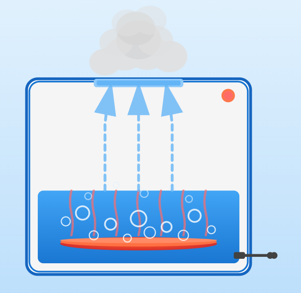 가열식보다 전력 소모가 적고, 수증기가 차갑기 때문에 아이가 있는 집에서도 안전하게 사용할 수 있습니다.