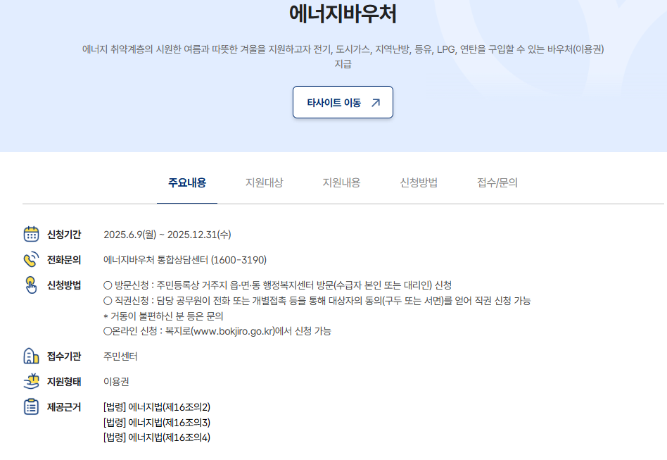 - 에너지바우처 — 기초생활수급자 대상, 12월 31일까지 접수