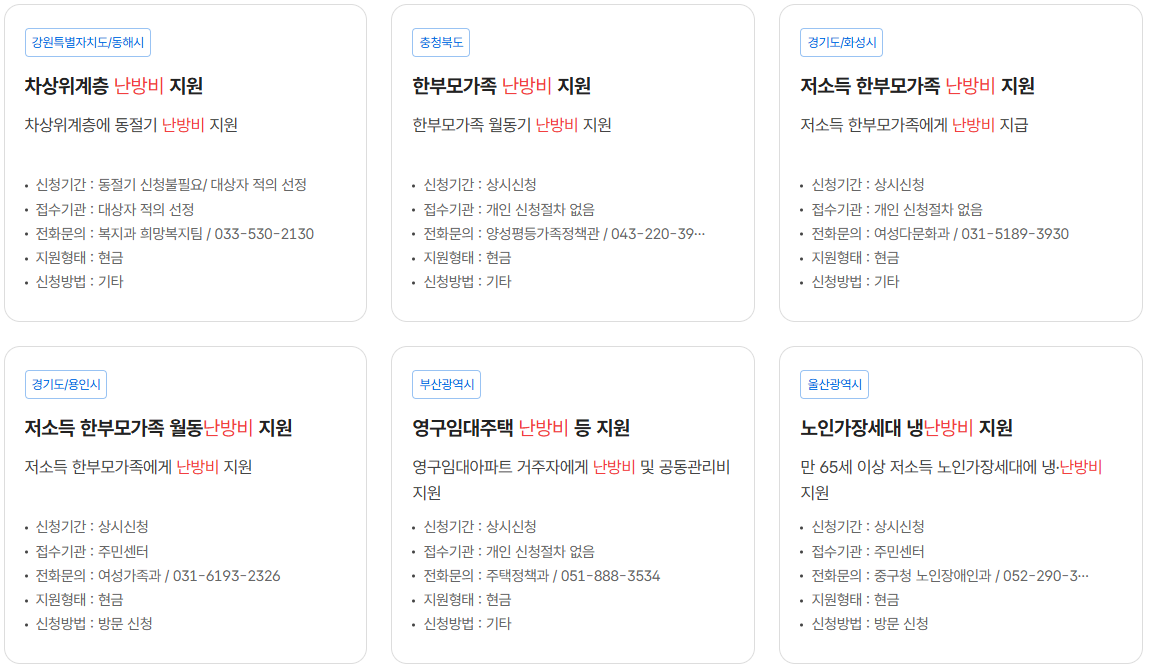 일부 지자체는 단독세대나 전기난방 가구도 지원 대상에 포함하며,