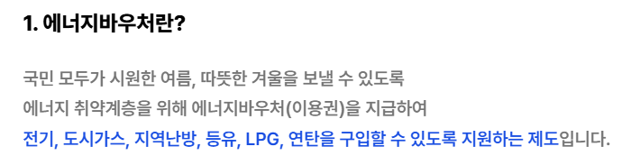 대표적인 것이 바로 에너지 바우처(난방 바우처)입니다.